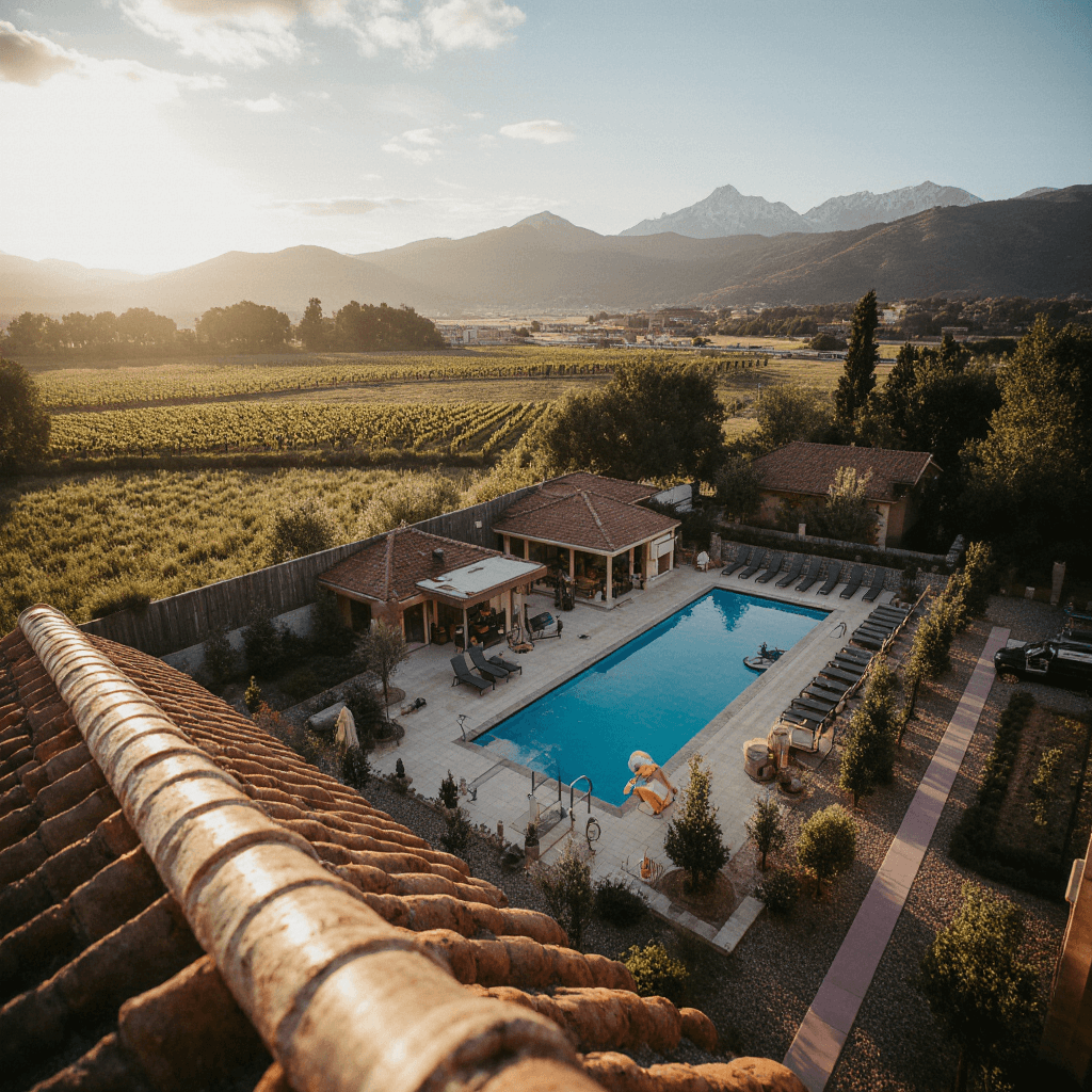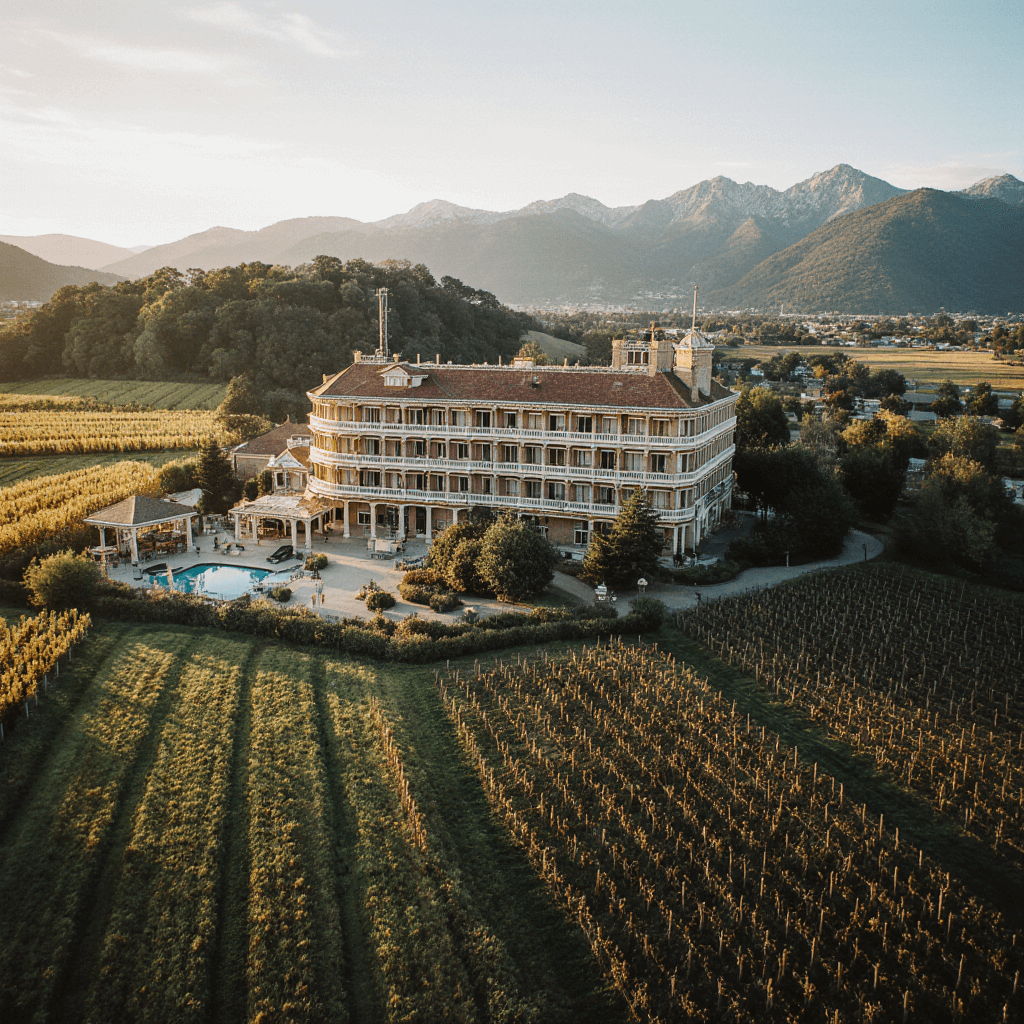 Комфортабельный отель утопает в виноградниках, создавая атмосферу уюта и роскоши. В местных погребах можно попробовать фирменные вина и узнать все о процессе виноделия. В отеле работает бассейн и сауна, а в стильных номерах предусмотрено все необходимое для комфортабельного отдыха. Посетители полюбили это место за тишину, живописные виды и гостеприимный персонал.