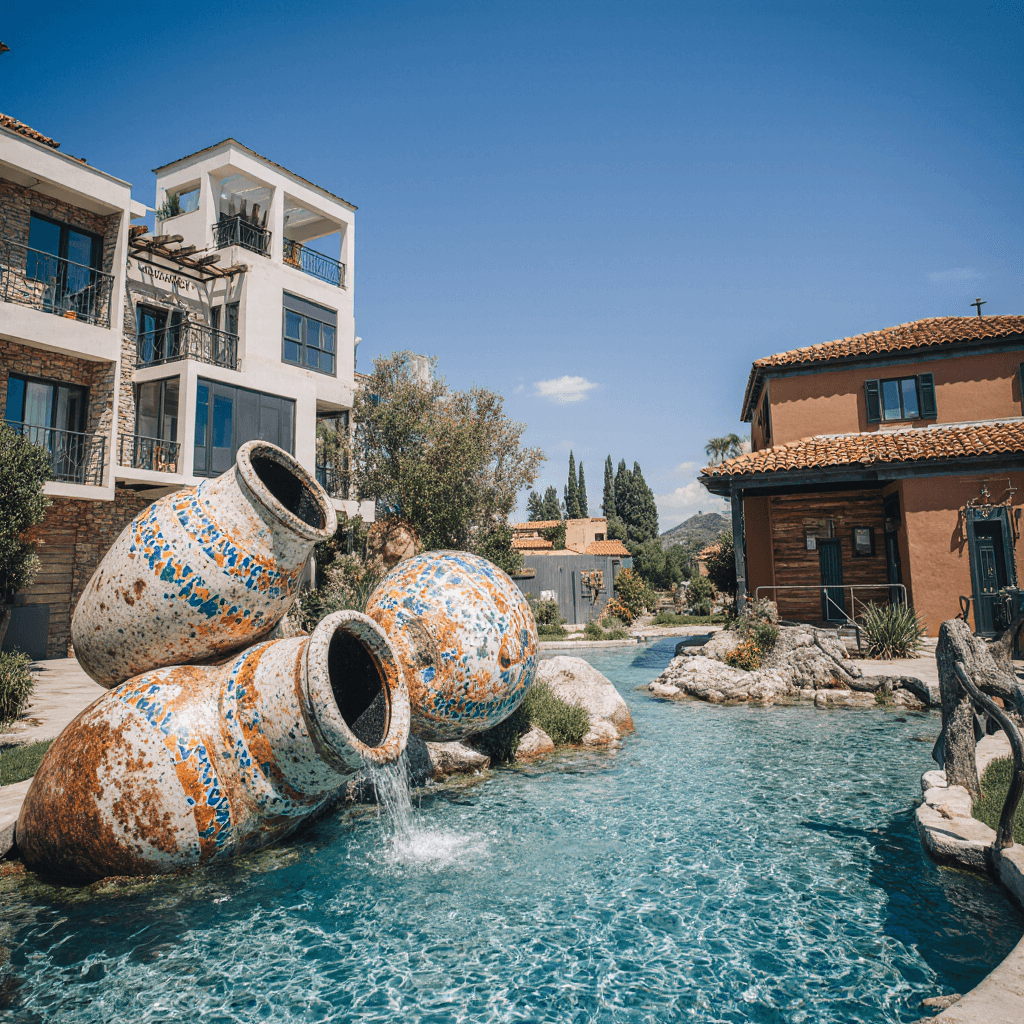 - Пространства для отдыха – бассейн, спа-зона и рестораны, оформленные с акцентом на грузинской культуре.