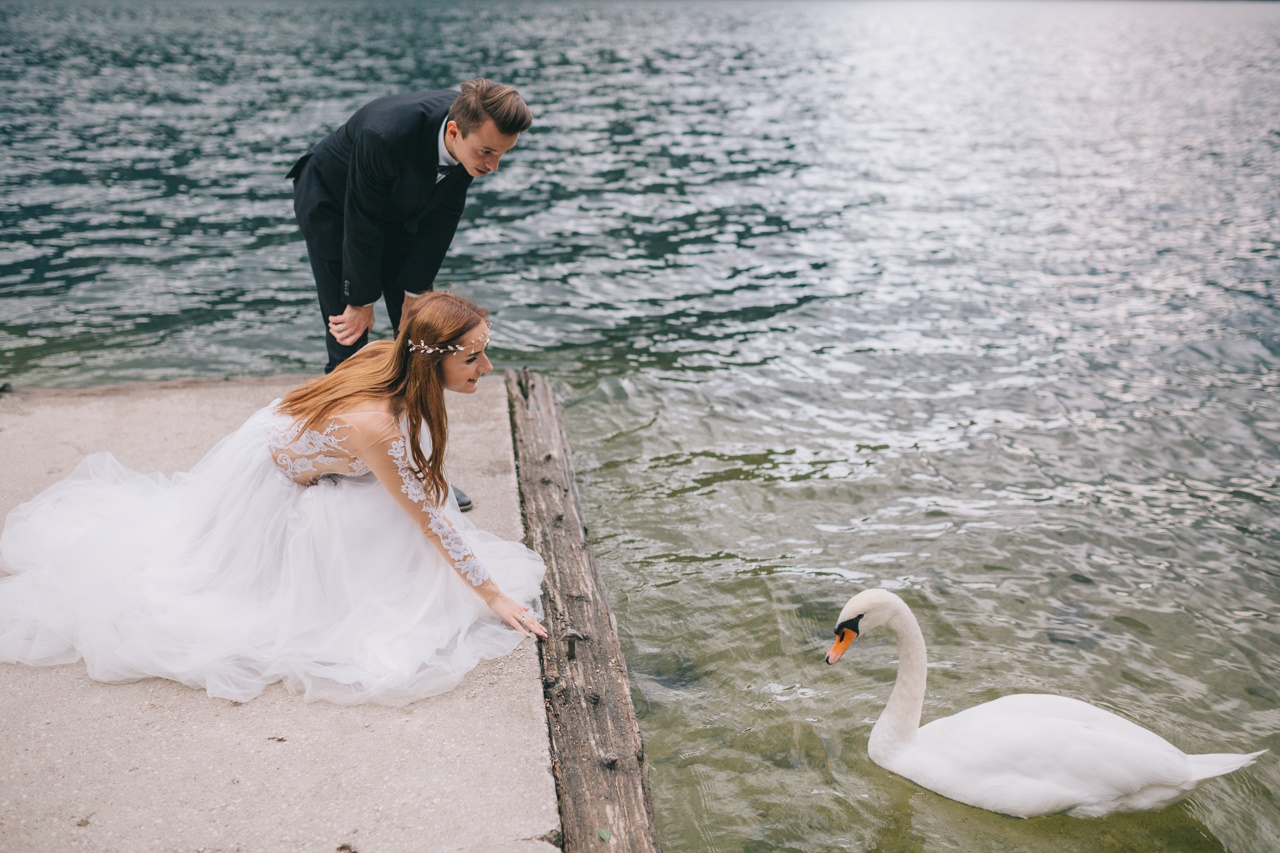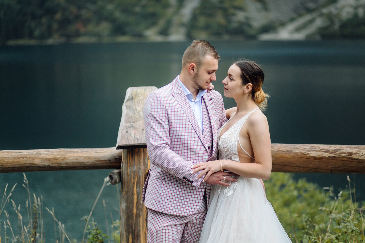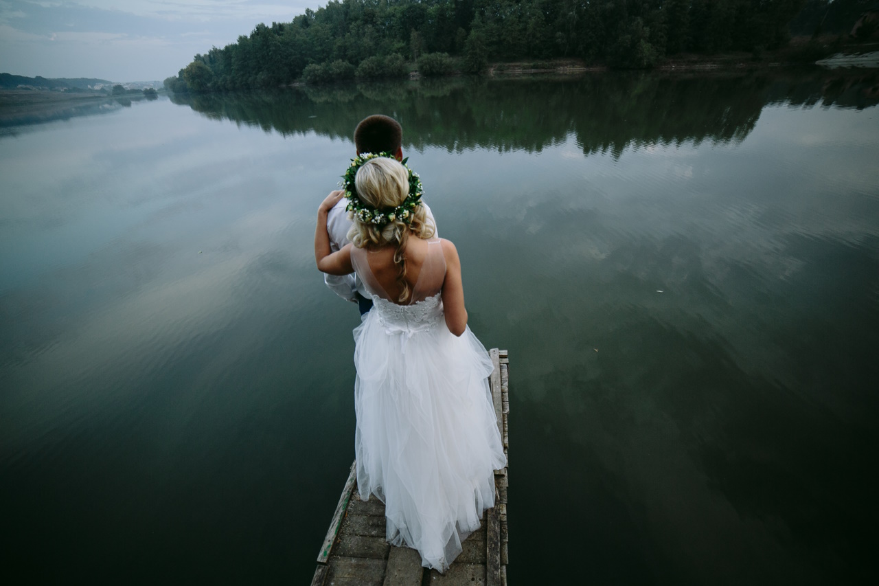 Очень красивые снимки получаются, когда жених и невеста смотрят на свое отражение в озере. Фон из гор на заднем плане придает образам дополнительную романтичность. Чтобы получить оригинальные фото на воде, используйте лодку. Для более драматичного эффекта можно устроить съемку на закате либо ночью с подсветкой. Самое мягкое естественное освещение – когда солнце поднимается и садится.